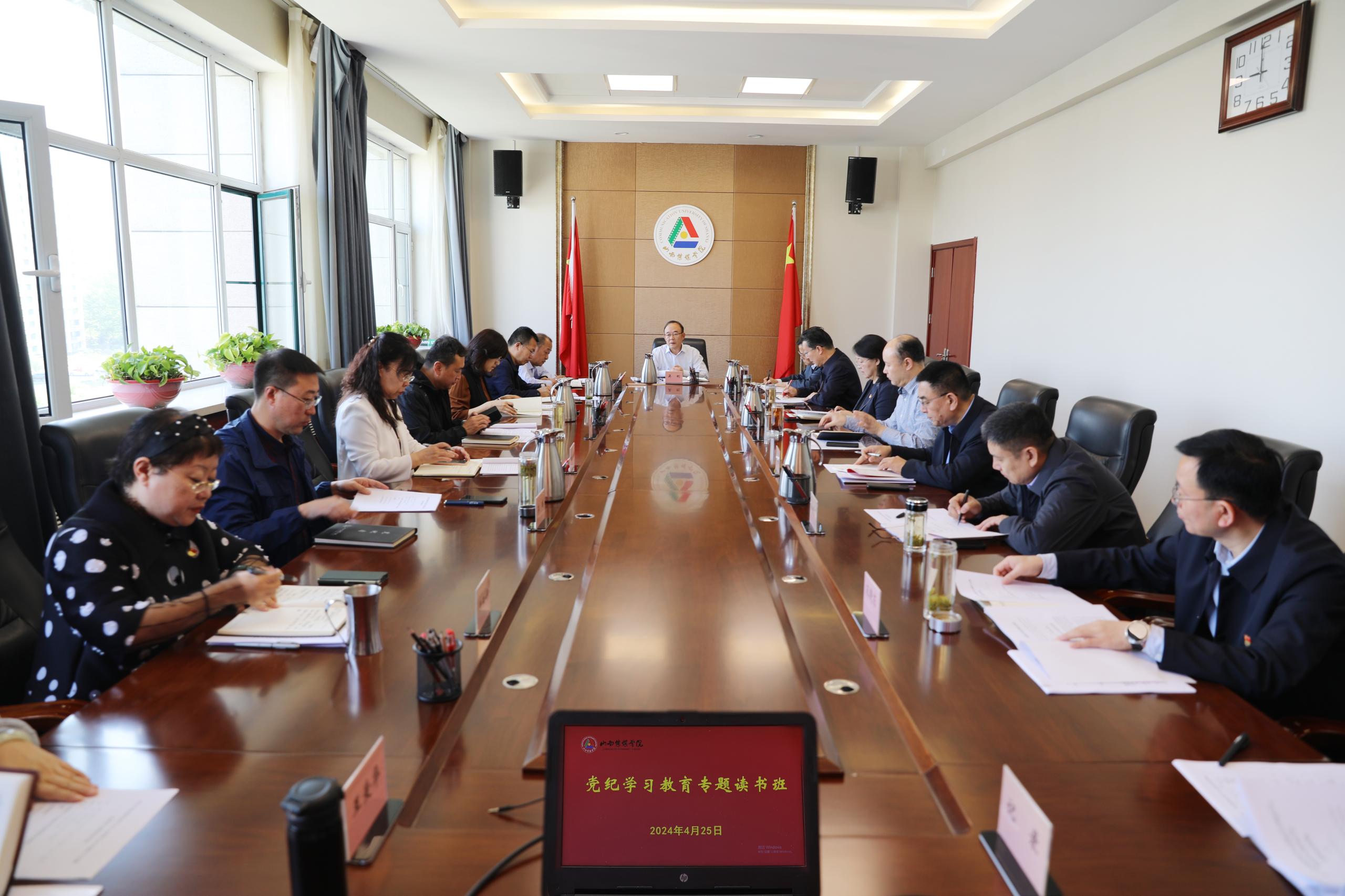 4月25日,我校举行党委理论学习中心组党纪学习教育专题读书班。党委理论学习中心组成员参加学习,党委书记吴刚主持学习并讲话。