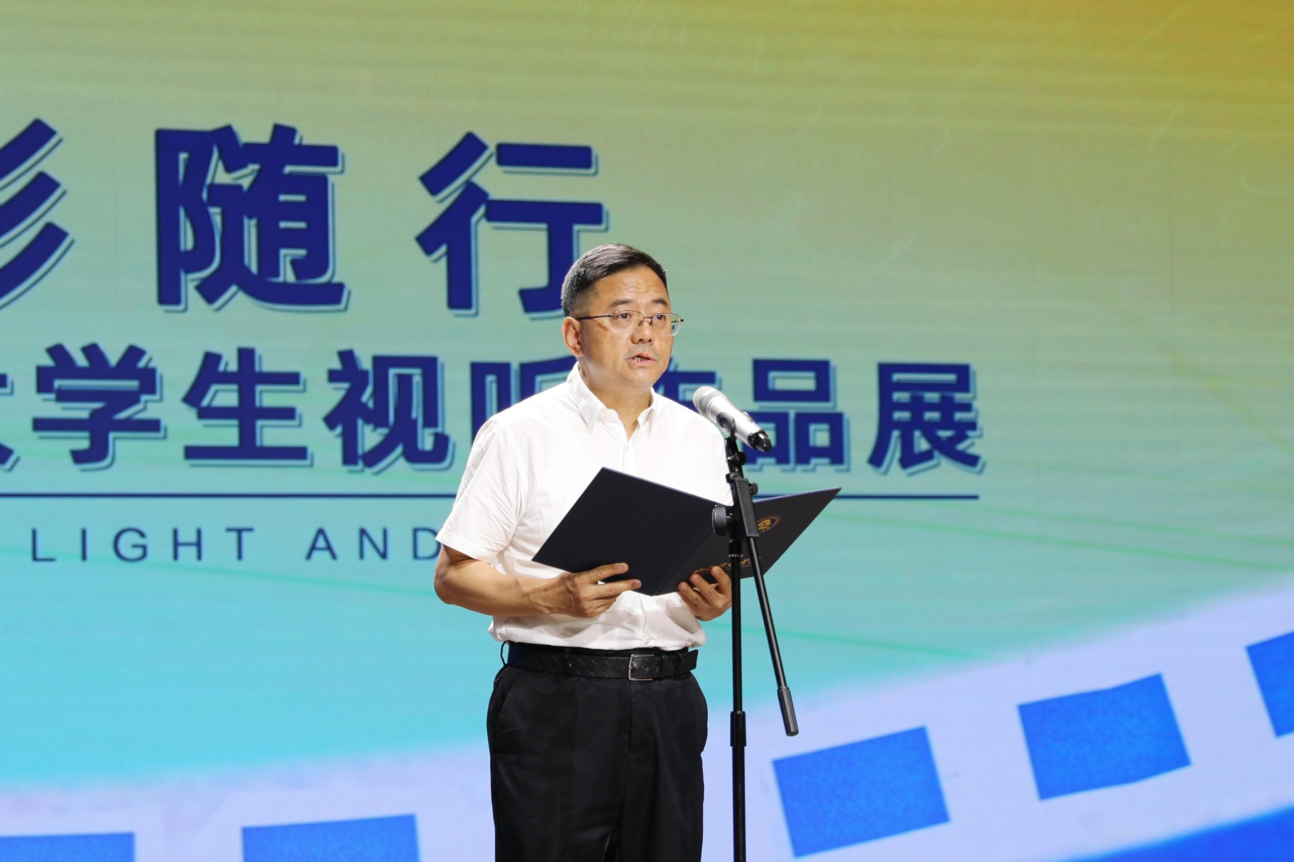 李伟在颁奖典礼上致词,代表校领导班子对前来参加本届作品展颁奖典礼的各个创作团队表示热烈欢迎。他指出,“光影随行”始终秉承“坚守正确导向,引领专业方向、创作学术精品、促进学生成才”的宗旨,始终致力于搭建一个专业、开放的交流平台,以达到汇聚青年影像人和视听艺术创作者,共同探索和展现中华文化的深厚底蕴与现代创新的目的。他期望,青年视听创作者们能够永不止步,持续追逐属于自己的热爱,不负韶华,尽情挥洒创造力和艺术潜能,以更加丰富多彩的形式,以及独树一帜的视角,讲述中国故事,展现中国精神。