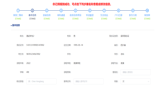 注:新生网上报到填写信息,要求新生所填写的信息务必真实、准确。