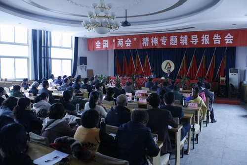 为及时全面贯彻落实两会精神,并指导学院工作,3月29日下午,学院举行党委中心组扩大学习贯彻两会精神辅导报告会。此次学习邀请全国人大代表、太原理工大学化学化工学院院长、博士生导师李瑞丰教授作辅导报告。院处级干部、正教授、思政部及职能部门全体教职工参加。座谈会由党委书记李远程主持。