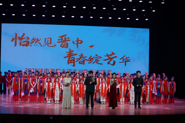 近日,由驻市21所高校、中共晋中市委宣传部、晋中市文化和旅游局、共青团晋中市委联合主办,中共榆次区委、榆次区人民政府等单位承办的“怡然见晋中 青春绽芳华”2026驻市高校大学生迎新艺术展演在晋中大剧院精彩启幕。我校师生应邀全程深度参与,校党委委员、副校长赵娅军出席活动。
