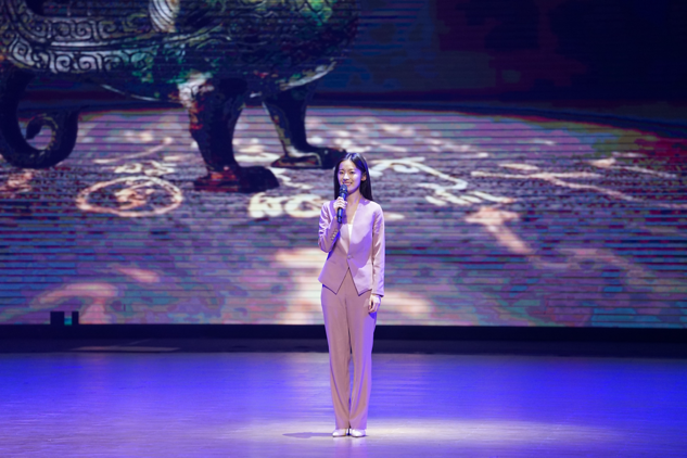 作为传媒人才培养的重要基地,我校学生在此次展演中全情投入、表现卓越。播音主持学院徐嘉钰、张珂嘉、李子祺、王慕希四名学生担任主持,全程把控节奏、稳定发挥,展现了扎实的专业功底与舞台驾驭能力。播音主持学院、表演学院学子立足专业优势,呈现了一系列高质量节目:文物讲解《华夏归珍万家合欢》以深入浅出的解说配合珍贵历史影像,让厚重璀璨的中华文明在舞台上鲜活再现,传递出文化传承的温度与力量;歌曲《有我》以青春激昂的旋律和饱满真挚的情感,唱响新时代青年的使命担当,凝聚起奋发向上的精神能量;朗诵《登上地球之巅》语言铿锵、气势恢宏,生动诠释了不畏艰险、勇攀高峰的攀登精神,令人心潮澎湃;独唱《一杯美酒》嗓音甜美清亮,融合浓郁的民族音乐风格,为整场演出增添了深厚的艺术感染力与人文韵味。