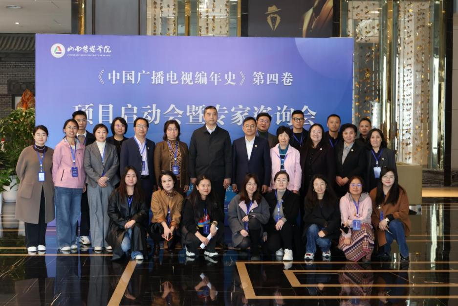 3 月 21 日,由中国广播电视社会组织联合会指导、山西传媒学院主办的《中国广播电视编年史》第四卷项目启动会暨专家咨询会在我校召开。校党委书记王铁梅会见中国广播电视社会组织联合会副秘书长徐江帆一行。校党委副书记、校长李伟,校党委副书记、副校长周建新,党委委员、副校长王红叶出席项目启动会暨专家咨询会,会议由周建新主持。中国广播电视社会组织联合会学术部主任石良豫、项目咨询专家代表中国传媒大学哈艳秋教授、孟伟教授等,学校科研部部长王秀萍、《视听理论与实践》 编辑部副主任周怡帆及项目编撰团队全体成员参加会议。